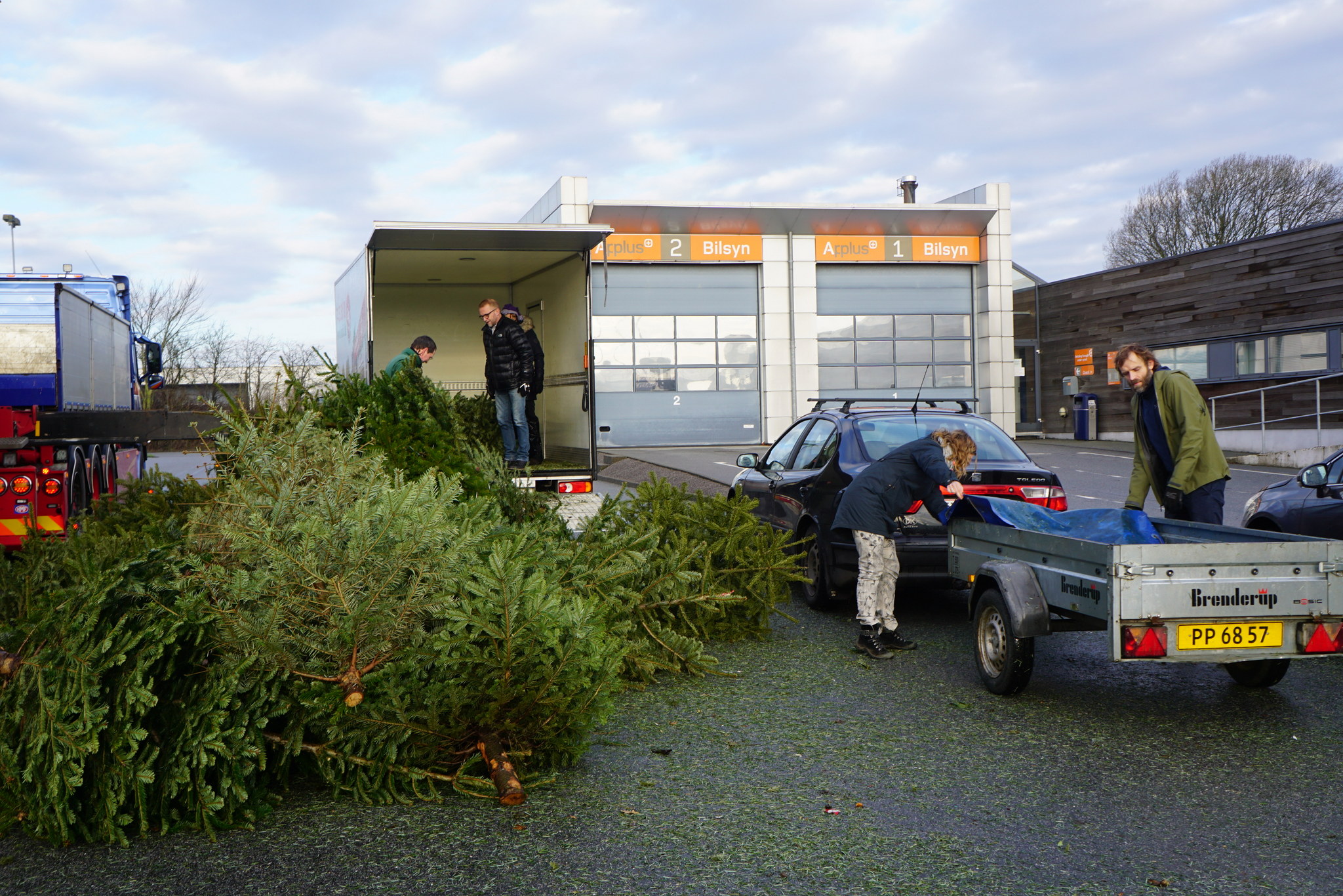 - Her skal vi samle alle juletræerne ind og fylde biler, trailere og hvad vi ellers har. Vi er færdige ca. kl. 12.30 – selvfølgelig med bagagerumskaffe bagefter!