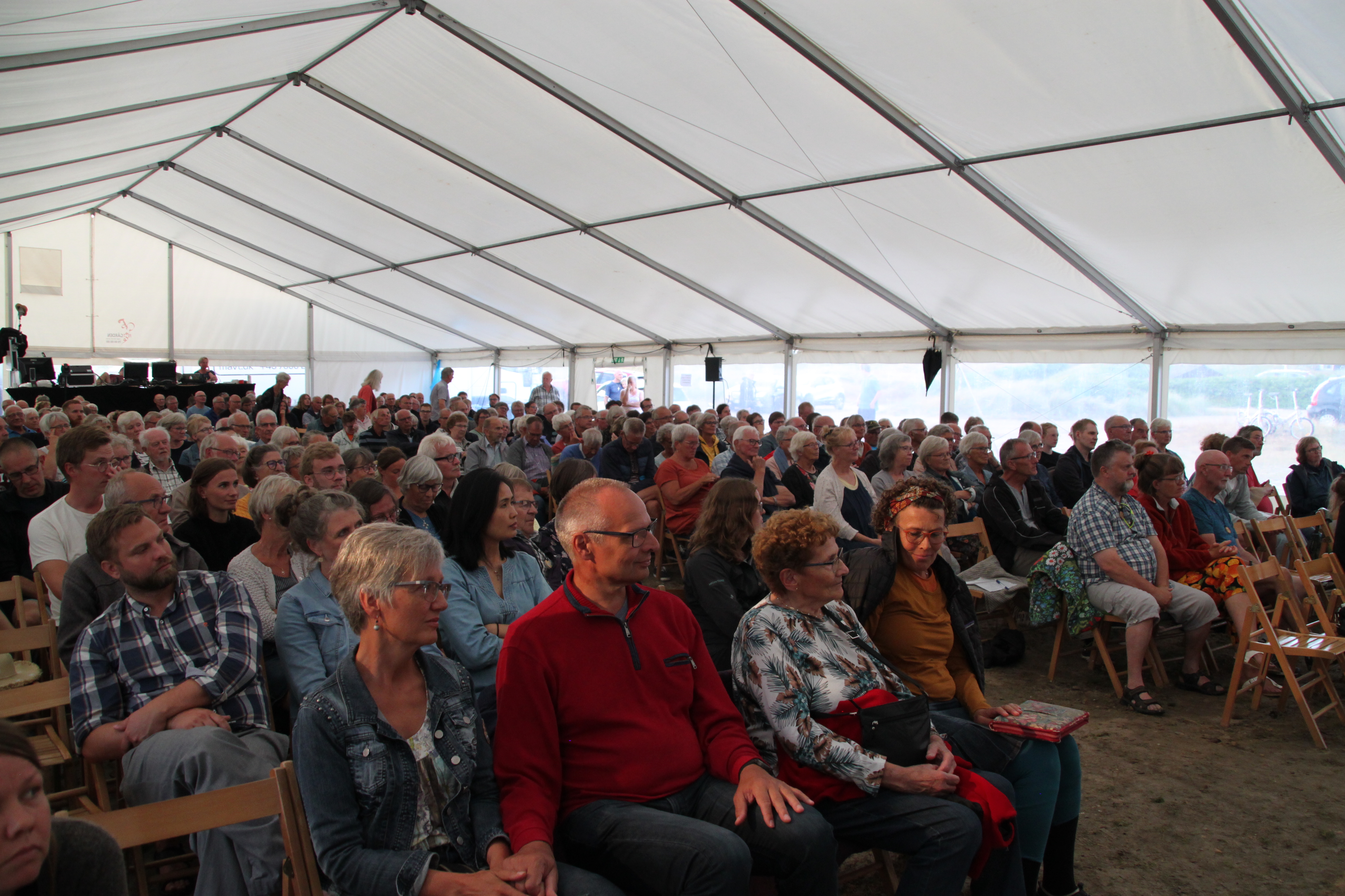 Voksne: Aftenbøn, aftenens tale i det store telt, eftersnak med kaffe og kage og så åbner natcaféen til samvær, sang og hygge.
