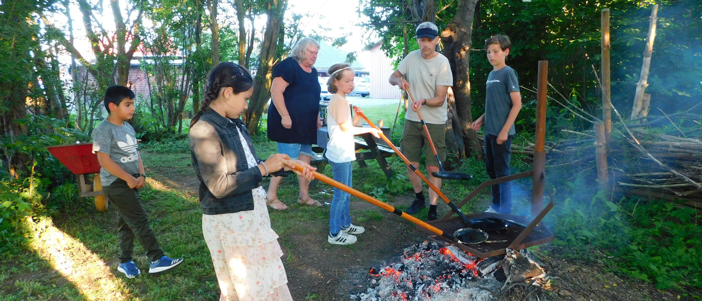 Bagefter var der kaffe og kage til de voksne, mens børnene og de unge bagte pandekager.