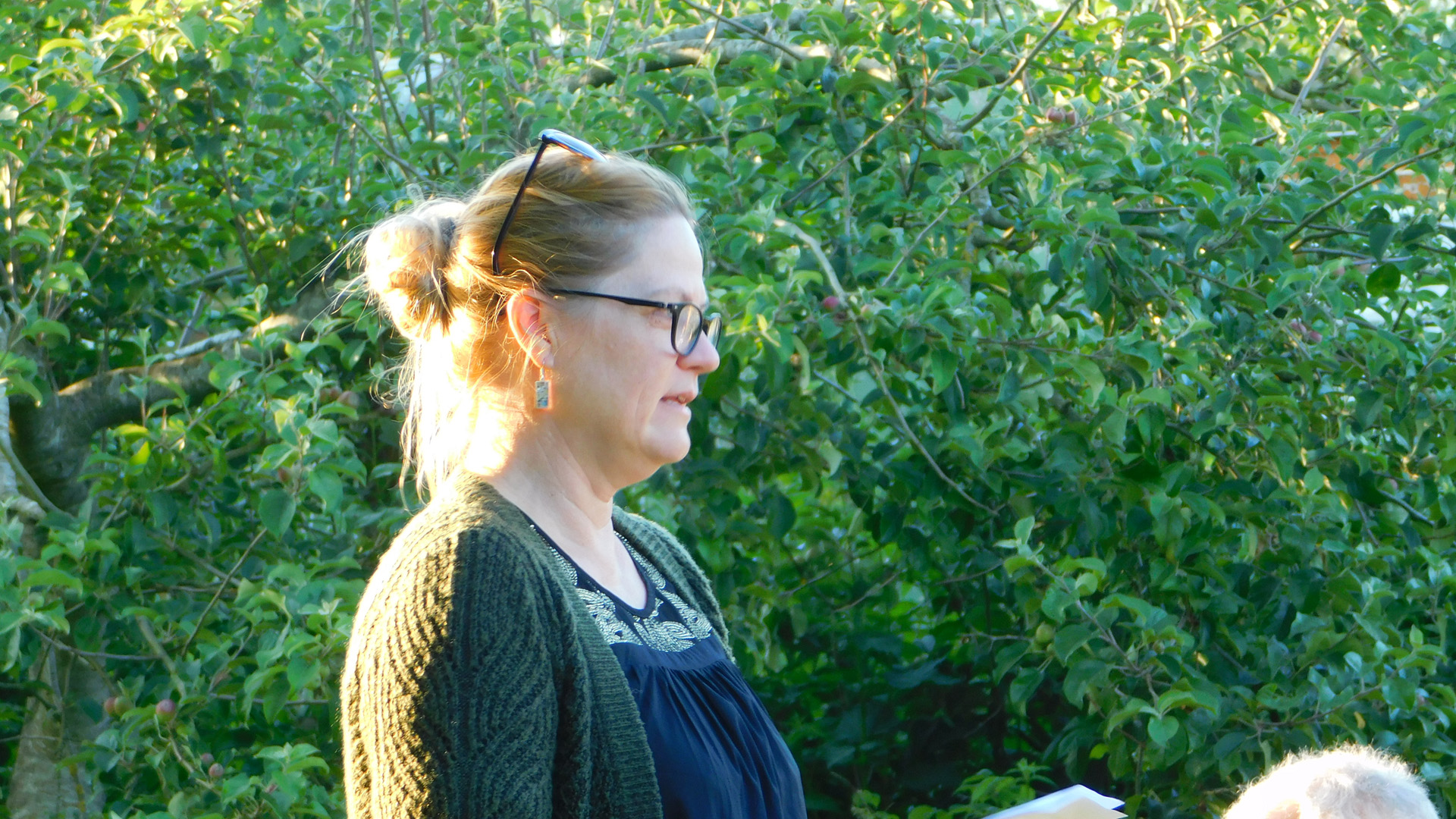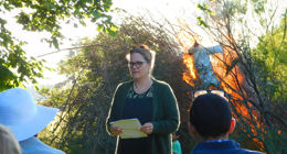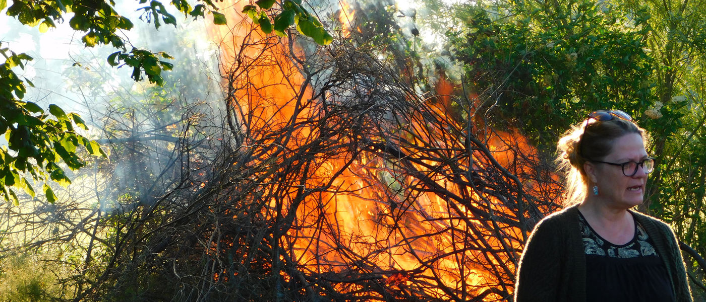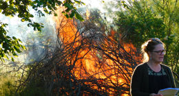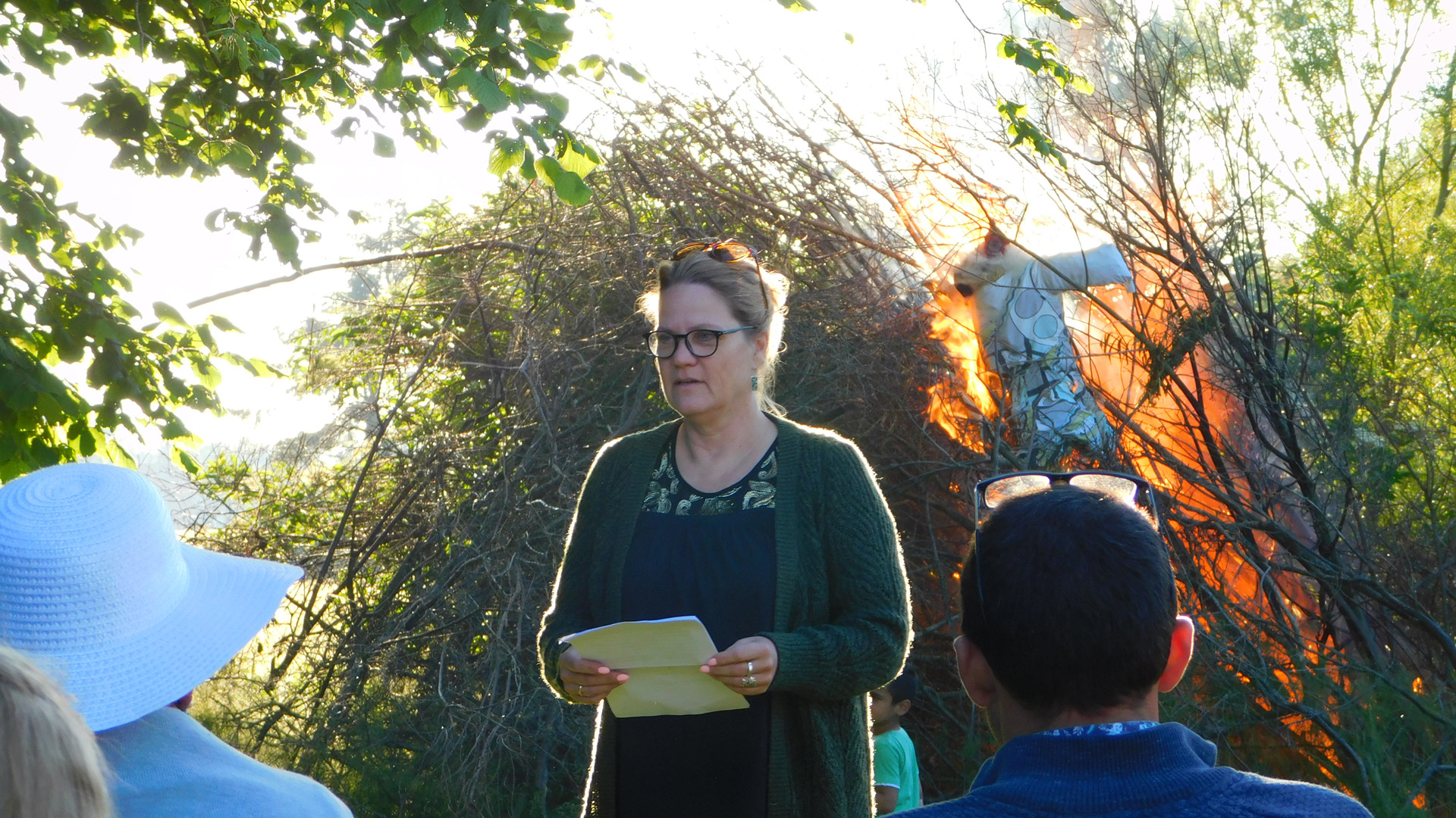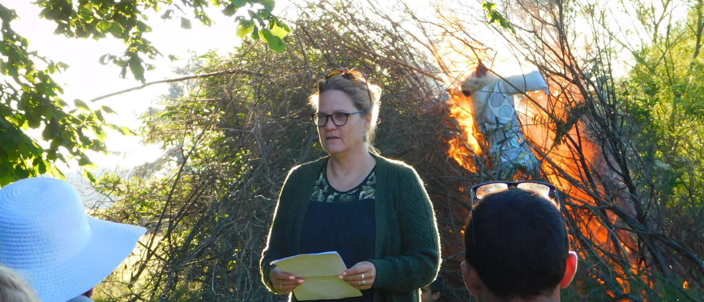 Trine holdt en brandgod festtale, og der var fællessang ved bålet.