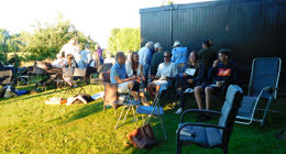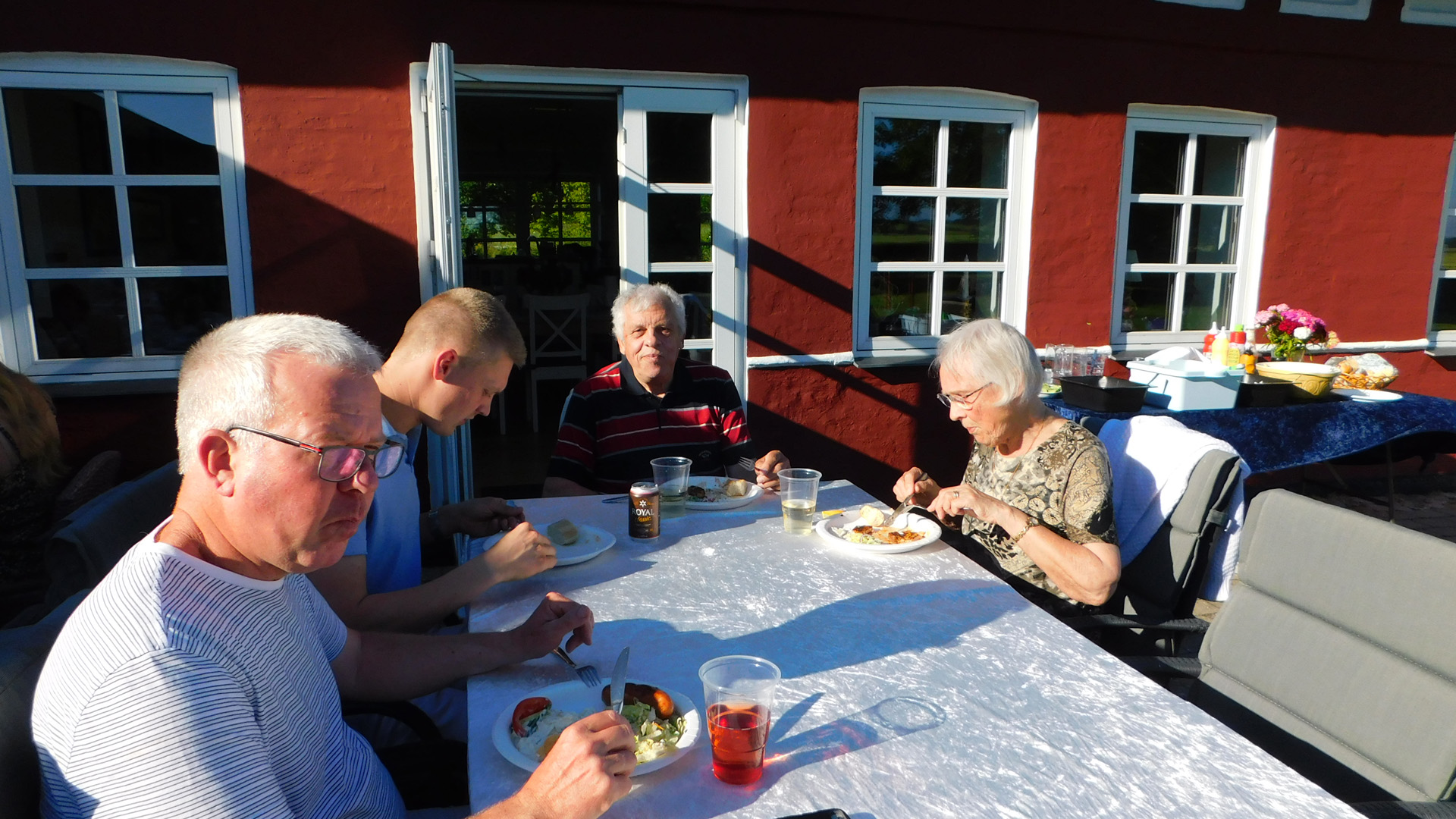 Det var en fantastisk flot aften med godt vejr, og Anne Mette og Torben lagde hus og grund, borde, griller og bål til denne uforglemmelige festaften.
