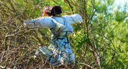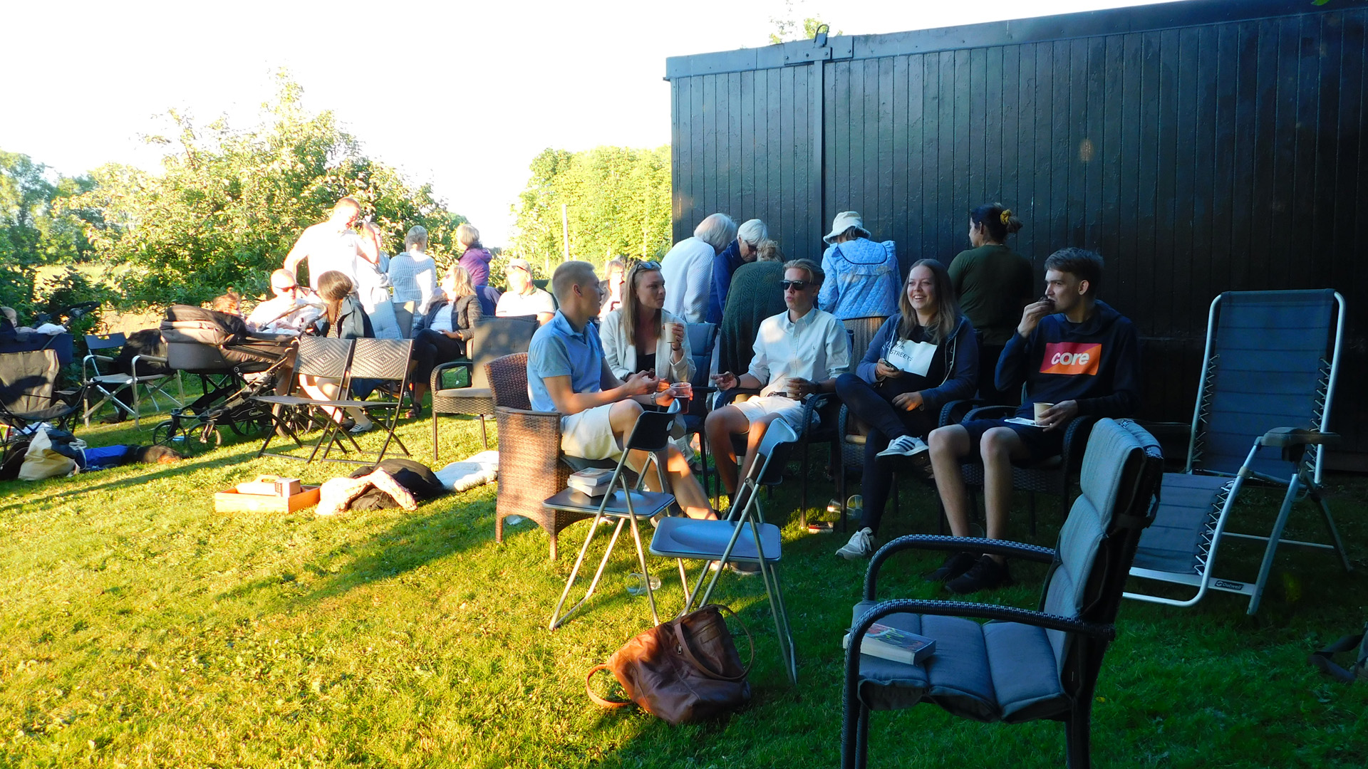 Gæsterne kom med kød til grillen og en stol at sidde på.