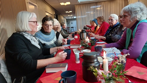 Vi hygger os med at synge nogle sange, og der læses et stykke fra en bog.
