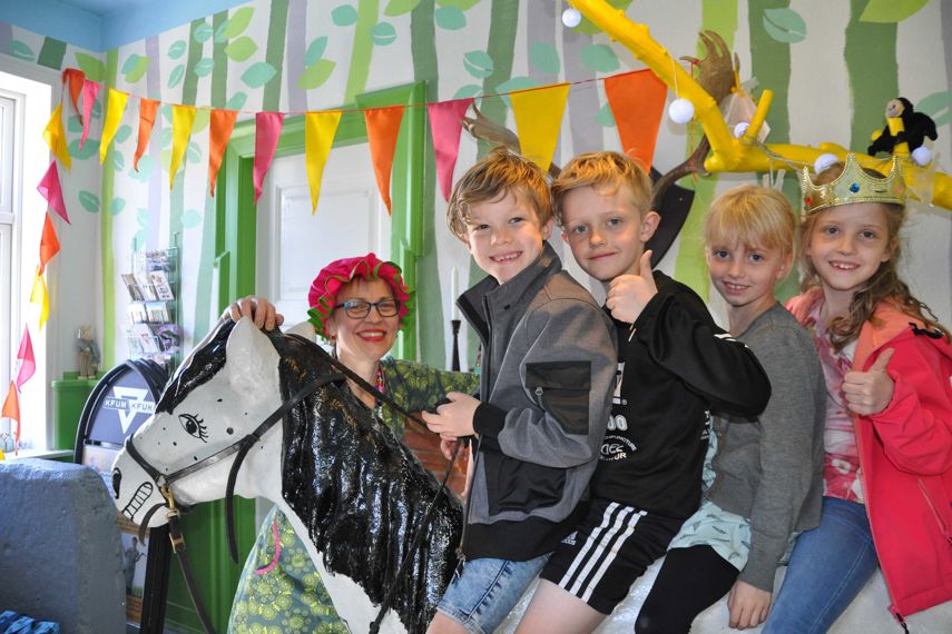 Du kan klæde dig ud, blive sminket, klistre, spille dukketeater, prøve grævlingehulen eller Pippis hest, sidde på Askefis toilet, spille på instrumenter i Kvinkelinkehaven eller sejle en tur med skibet Andrea.