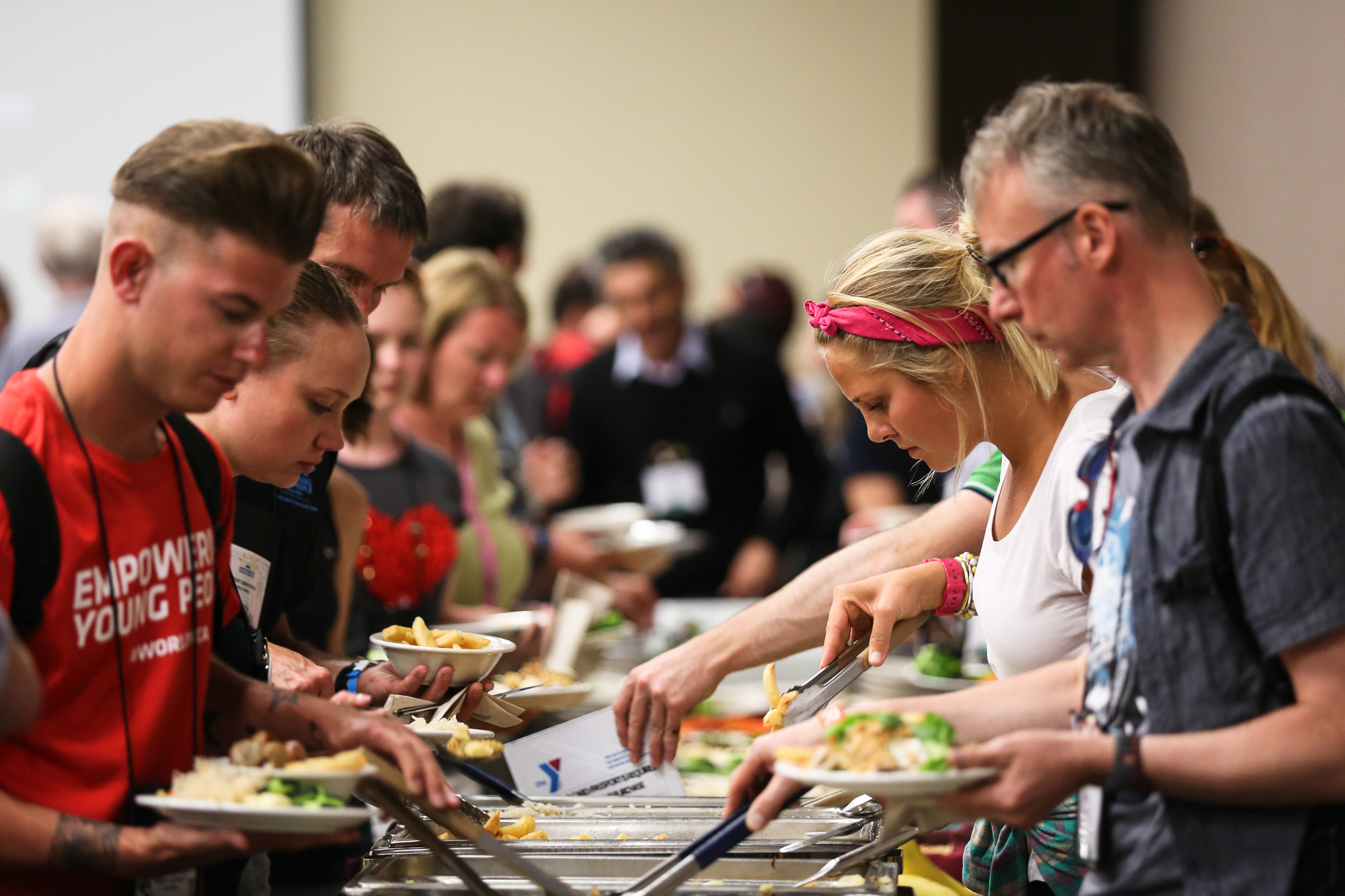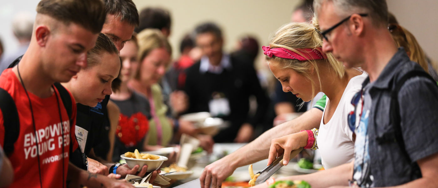 Morgenmad og frokost kommer til at foregå i frivillig-campen. Dog skal alle - frivillige og deltagere - spise sammen på venue.
